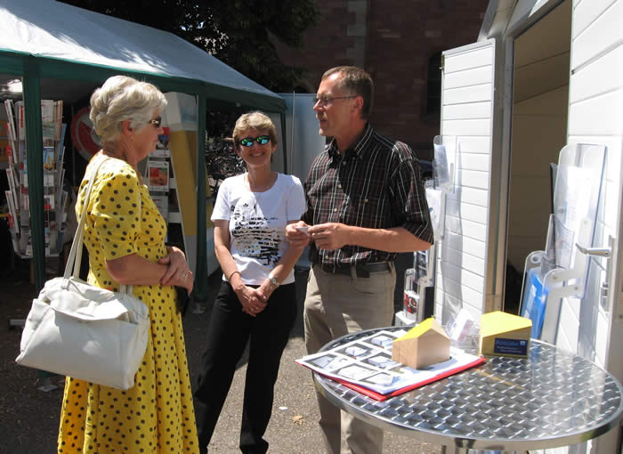| Eckhard und Edith Aßmus von der Fa. ADSOBA im Gespräch mit einer interessierten Besucherin des Solarfestes |