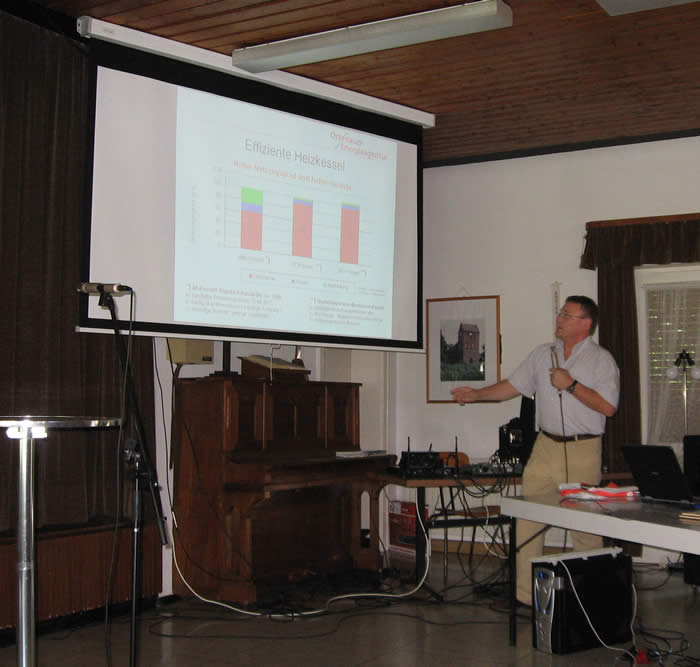 Die Experten der Finnen Dilmetz (Heizungen), Adsoba (Solaranlagen), Dämmkauf (Dämmstoffe) und Lux-Haus standen bereit, um die gestellten Fragen gerne zu beantworten. Im Laufe des Nachmittag gab es interessante Referate zu den Themen „Bringen wir das Klima aus dem Takt?", „Wie die Atomkraft das Klima schädigt" und ob eine 100prozentige Versorgung mit erneuerbaren Energien möglich ist. Damit es nicht nur Information sondern auch Unterhaltung für die Gäste gab, dafür sorgten die Rheinauer Tastenkids, ein Boule-Wettbewerb und die Unterhaltung der allerjüngsten Festbesucher auf der Spielwiese hinter dem evangelischen Gemeindehaus.