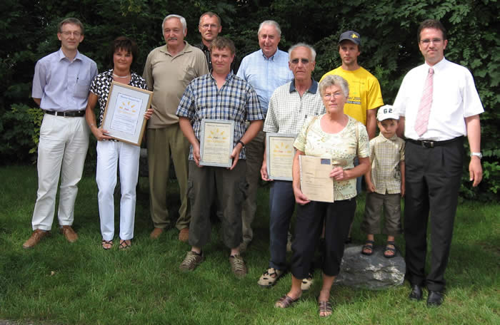 | Rudolf Höhn konnte im Namen der Projektgruppe Rheinau einen Preis für gewerbliche Betriebe an die Firma Biomark GmbH aus Freistett vergeben. Ein Preis ging auch an den Verein Reiterhof Hinterwald und die Firma Adsoba aus Holzhausen. Besonders lobenswert sei der Einsatz der Familie Fleig aus Honau, die sich trotz des fortgeschrittenen Alters und der damit verbundenen finanziellen Risiken für die Solarenergie entschlossen haben. Die Preisträger und die Gewinner des Preisausschreibens konnten für ihr Engagement Urkunden und Preise mit nach Hause nehmen. |
