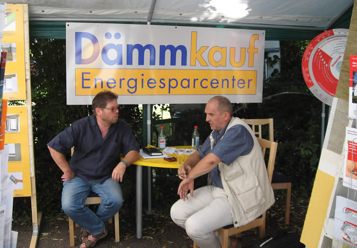 | Eckhard und Edith Aßmus von der Fa. ADSOBA im Gespräch mit einer interessierten Besucherin des Solarfestes |